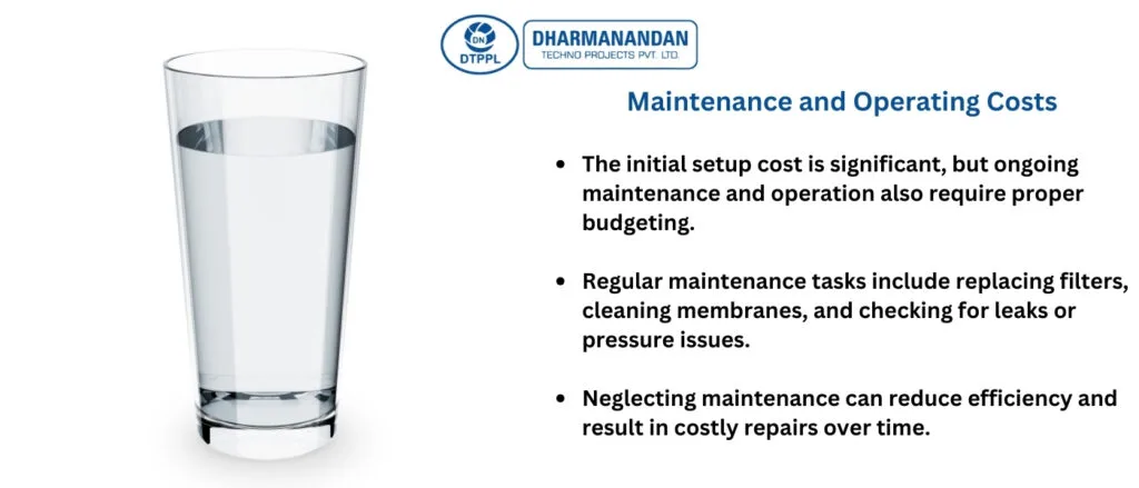 - Budget: The initial RO plant investment includes purchasing the equipment, installation, and ongoing maintenance costs.